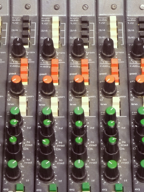 In-line: it’s a basic channel, it manage mic and line input with eq, aux sends and volume. Also it manage tape return on specific input and monitor section. It’s possible invert input with tape return to mix the latter (remix switch). Bus assignement send it to tape out and monitor section without possibility to assign it to main.