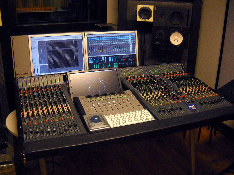 It has 24 channels and eight effects return and I did broaded it frame to insert Euphonix MC Mix control surface, Apple keyboards and third screen of my DAW.