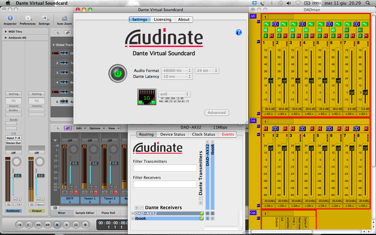 Apple Logic Pro, DADman and Dante Virtual Soundcard Published July 5, 2014 at 1280 × 800 in DAD AX32 on the road ← Previous Apple Logic Pro, DADman and Dante Virtual Soundcard